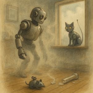 Slav, jak to Slav, wszedł do domu, postawił pudło na stole, i... pudło się rozpadło. Z środka nawiał robotyczny kot. Z piskiem, z anteną na ogonie i bez wyjaśnień.